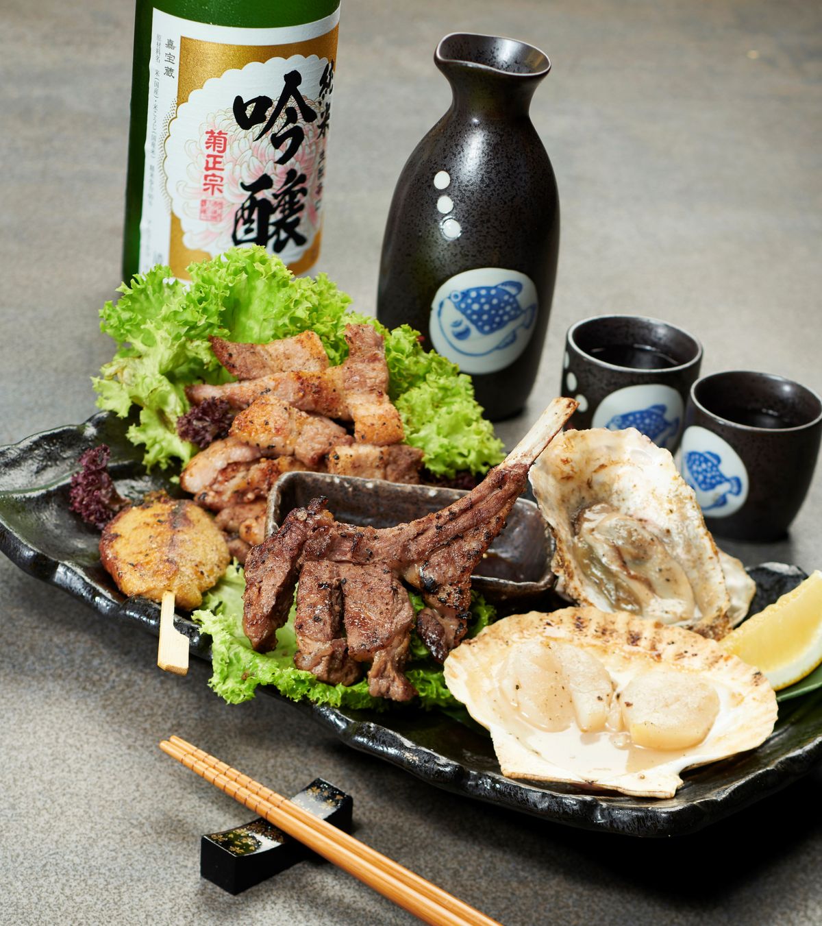 Kagoshima Buta Teriyaki, Foie Gras, Hotate, Kaki & Lamb Rack