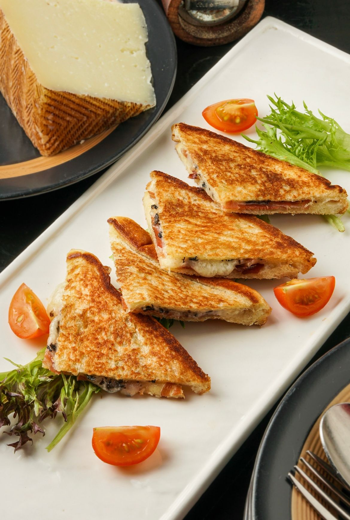 A 21st Century Update on a Pre-War Barcelona Classic... Jamon Serrano, Iberico, Manchego Cheese & Truffle Paste, Rolled into a Toasted Sandwich