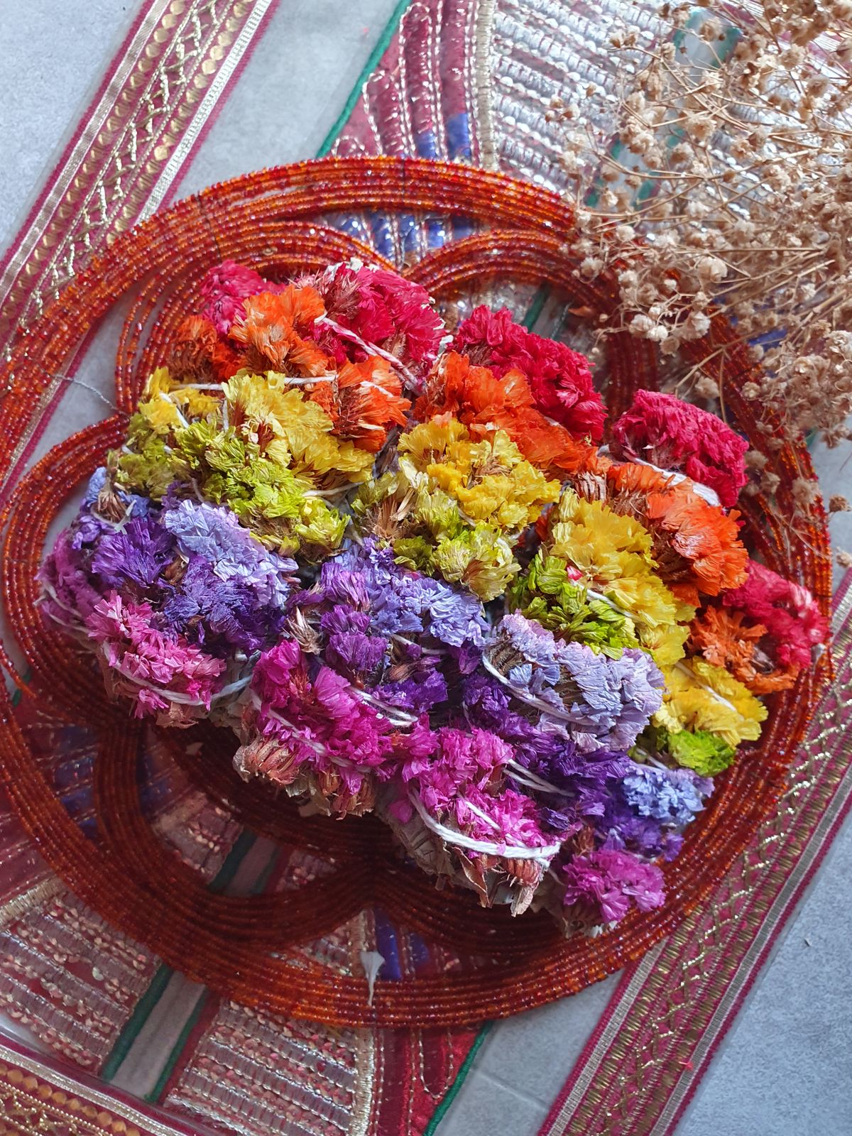 The Marigold is also called the “herb of the sun”, representing passion and even creativity, happiness, joy, optimism, and good luck. Limited pieces, as it takes 1.5 weeks to dry out. As and when its available I will update. Random colours will be sent. Orange/Yellow - 14 to 15cm long