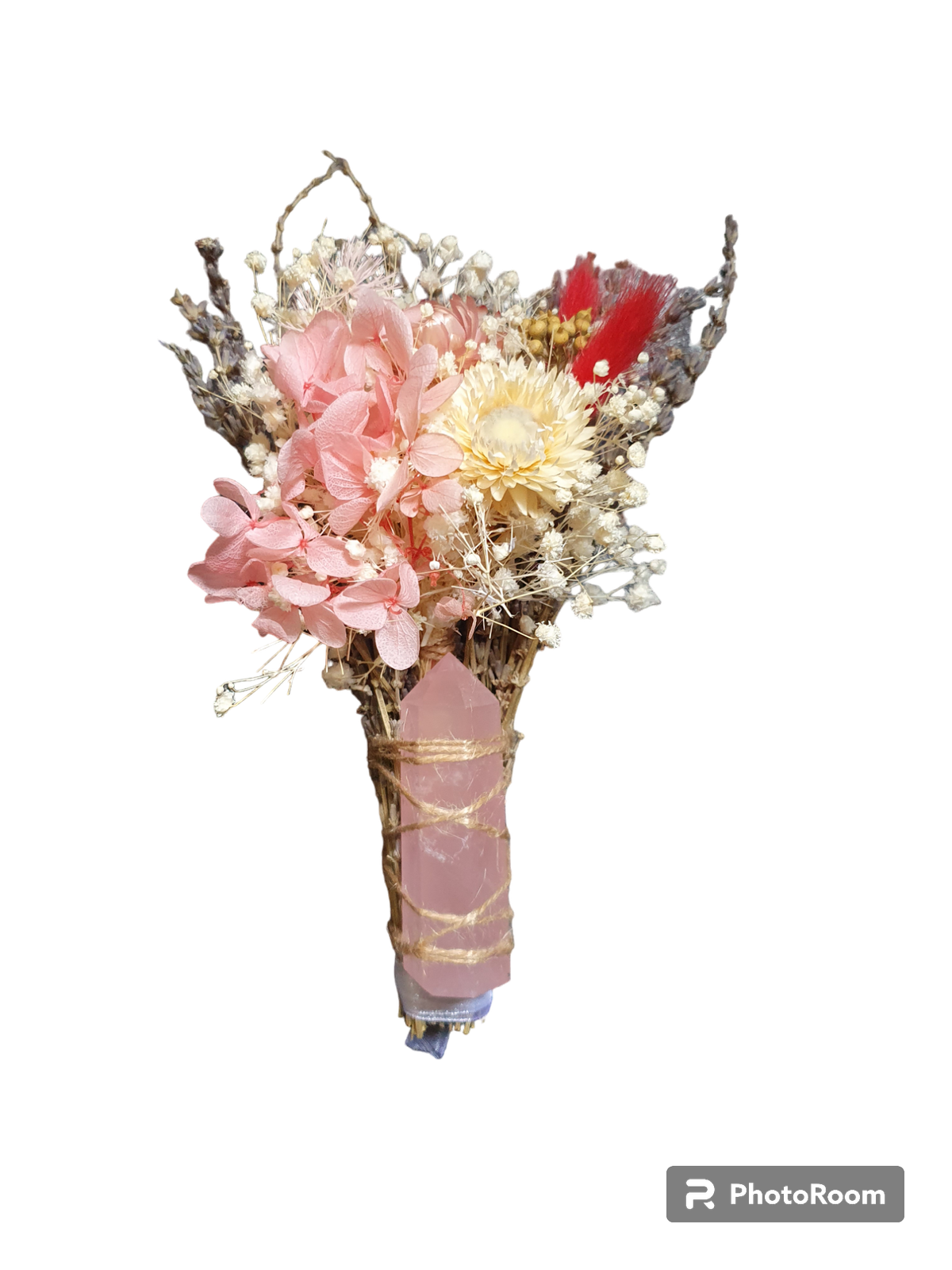Rose Quartz Tower Crystal 🌸Flower Wand🌸 Perfect for any celebration. Handcrafted with love, using herbs and flowers. Paired with ethically sourced crystals from around the world. To bring in love and positive energy into your living space. These wands are designed to enhance the mood by the flowers beautiful colours. The crystals are believed by many to contain a pure and powerful energy that's able to cleanse and change energy, including the energy within our home.