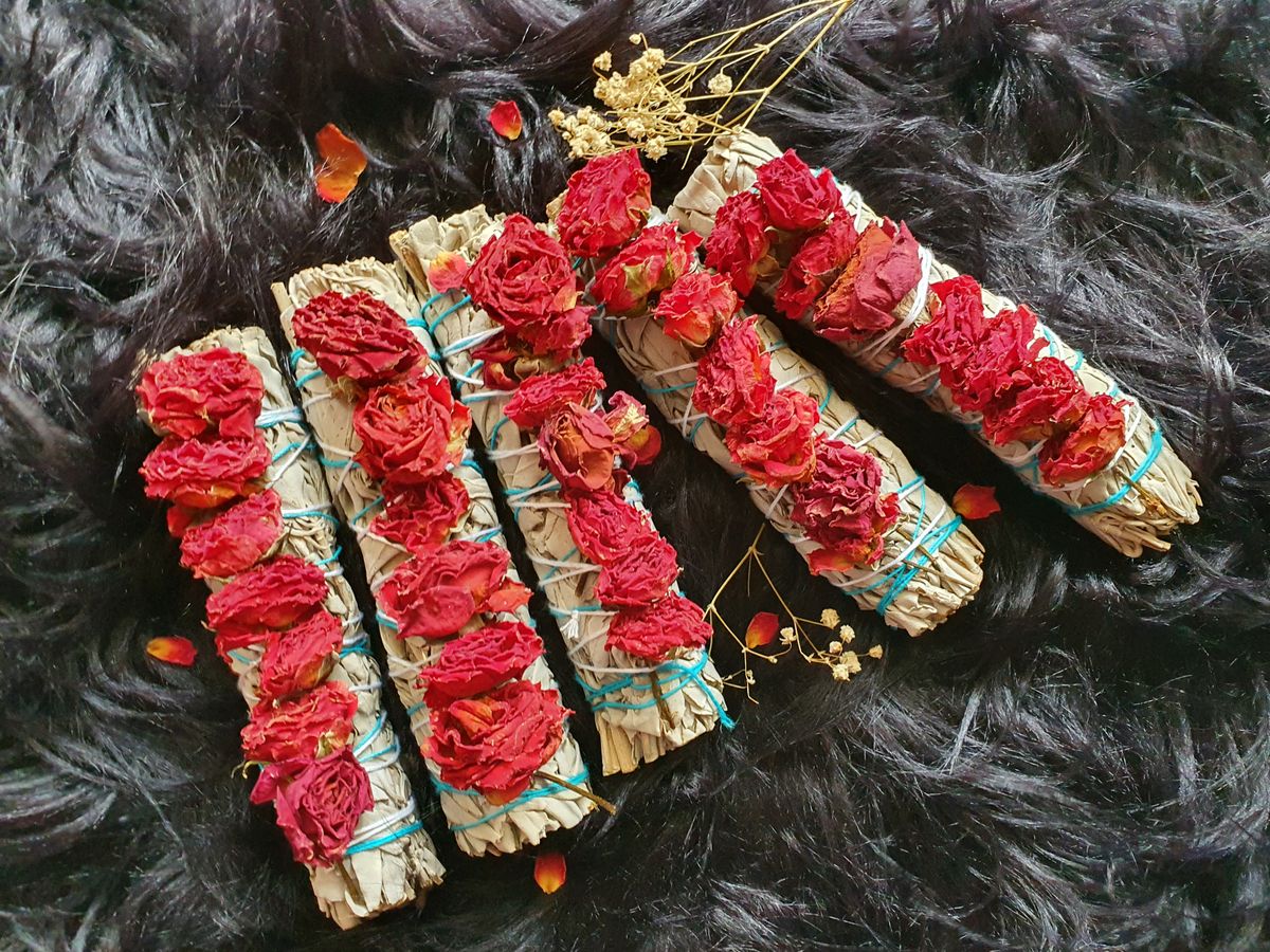 I handmade these Rose petal sticks, you will see when I attached the fresh petals to the lovely dried petals. Rose: Known to bring love and happiness >> Sage: Energy Cleansing - Removes Negative Energy - Harmonizes the Mind. Imagine joining the 2 powerful items together, Rose Smudging Stick is all about LOVE. This creation uses whole rose petals to bring in love, light, clarity, growth, purpose and a balance to your mind, body and spirit. Together with Sage, it clears away negative thoughts and feelings and harmonize the body by releasing the stress of your spirit. Each Stick is approximately 15 to 16 cm long. Please keep in mind, these are handmade so measurements may vary.