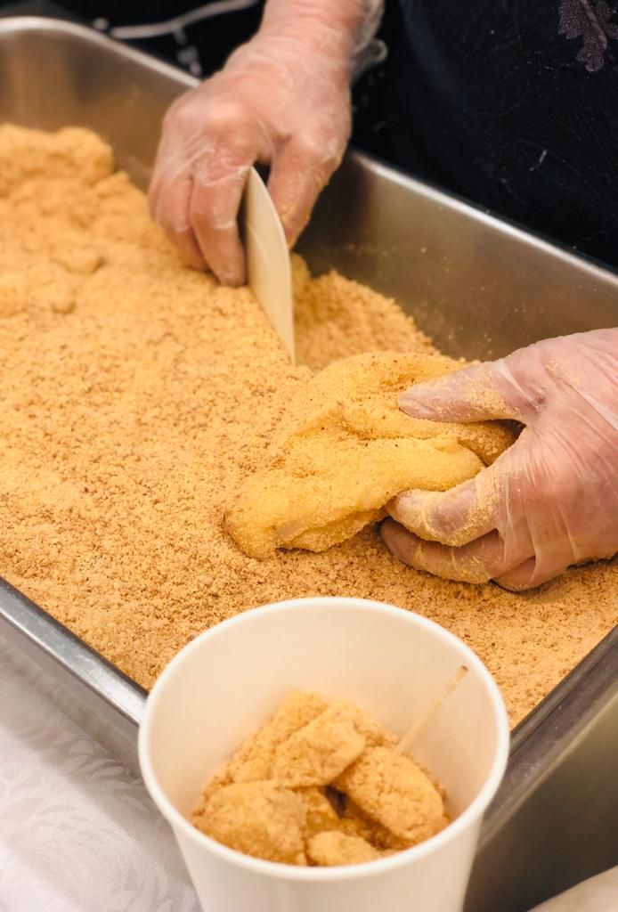 Tender QQ Muah Chee which are Glutinous Rice Flour based dough coated with fine peanut and sugar.