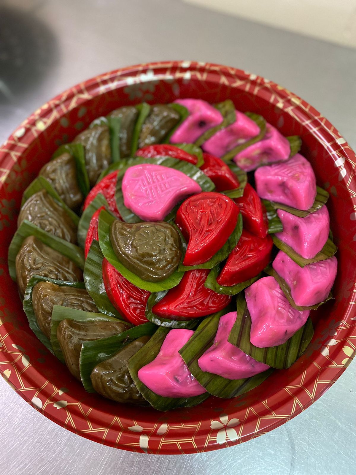 Assortment of savoury and sweet Cutie-sized Kuehs — 10 Png Kueh, 10 Cikak Dousha Kueh and 10 Tiam Tor Peanut Kueh.