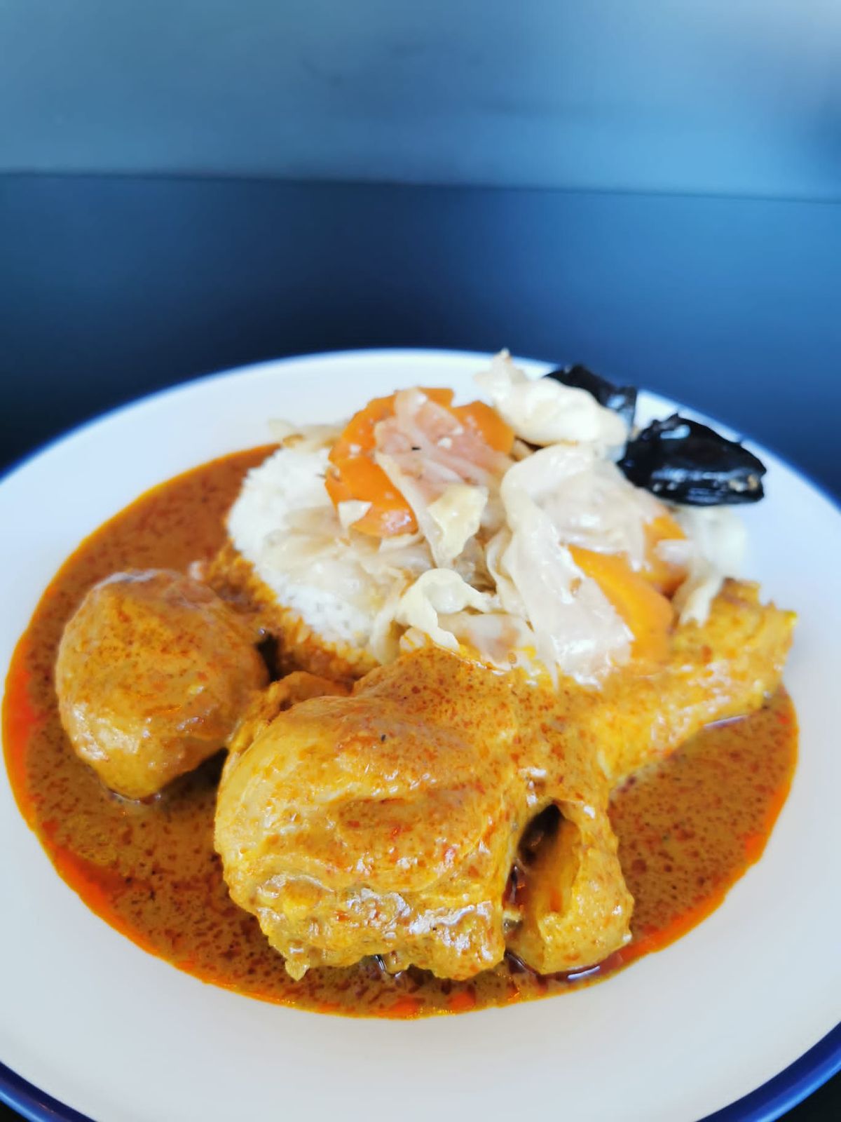 White Rice with 1pc Curry Chicken Drumstick, 1pc Curry Potatoe and Zhap Chye.