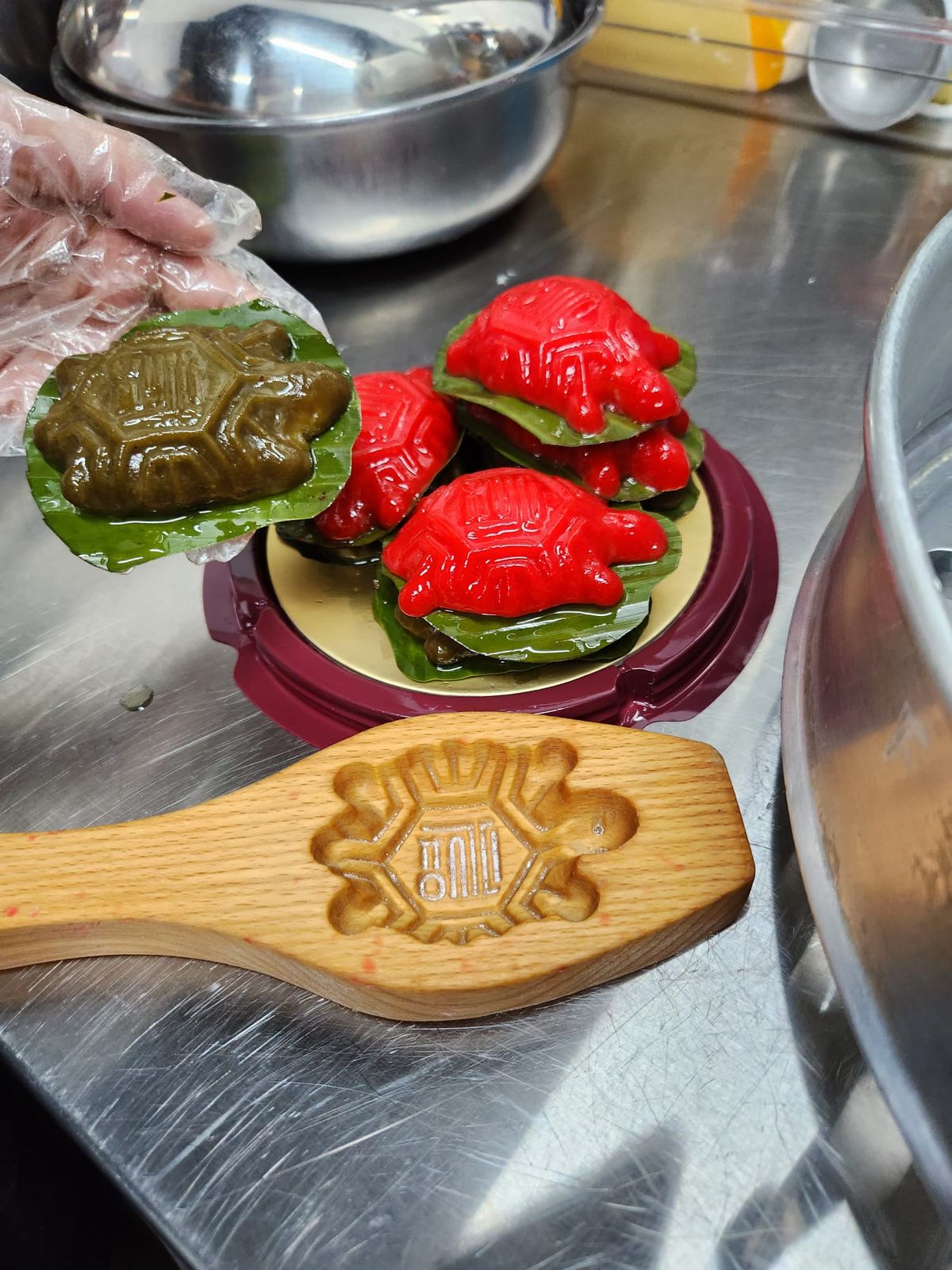 Total 9pcs. Mix of Cikak (green) and Tiam Tor (red) Tortoise Dousha Kueh (Indicate in Special Remarks how many pcs of Cikak and Tiam Tor Tortoise Kueh you require)