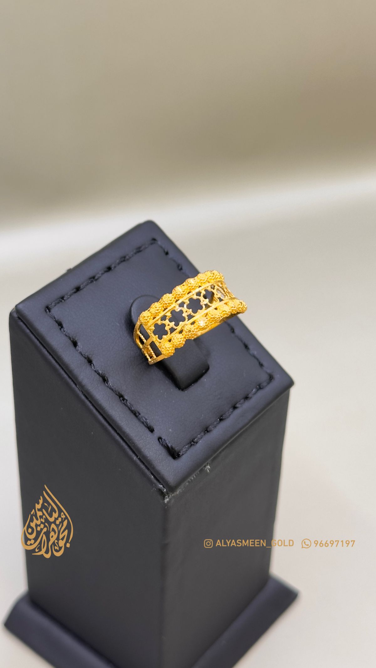 خاتم مصنوع من الفضة الخالصة وبتصميم راقٍ، تم طلاؤه بطبقة من الذهب لإضفاء لمسة فخامة وتألق. يجمع هذا الخاتم بين بساطة الفضة ولمعان الذهب، مما يجعله قطعة مثالية للإطلالات اليومية والمناسبات الخاصة. يتميز بلمسة نهائية ناعمة وتفاصيل دقيقة تمنح يدك مظهرًا جذابًا ومميزًا.