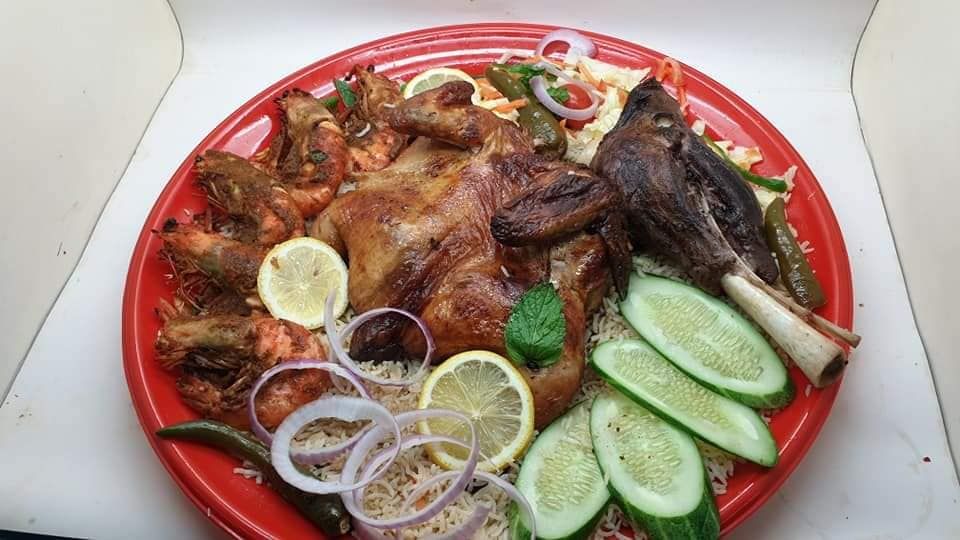 Whole Roasted/Smokey Chicken + 1pc Lambshanks + Prawns served with Infused Aromatic Basmati Rice, Choice of Mandi Rice Serves 4-5pax.