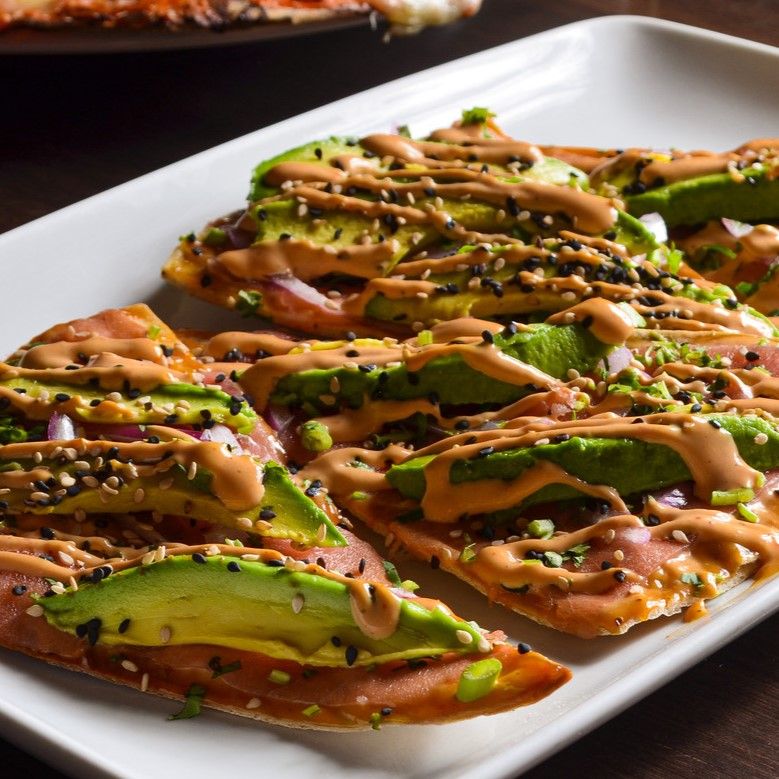 (375 gramos) Pan pita, alioli de chipotle, aguacate, cebolla, cilantro y ajonjolí negro