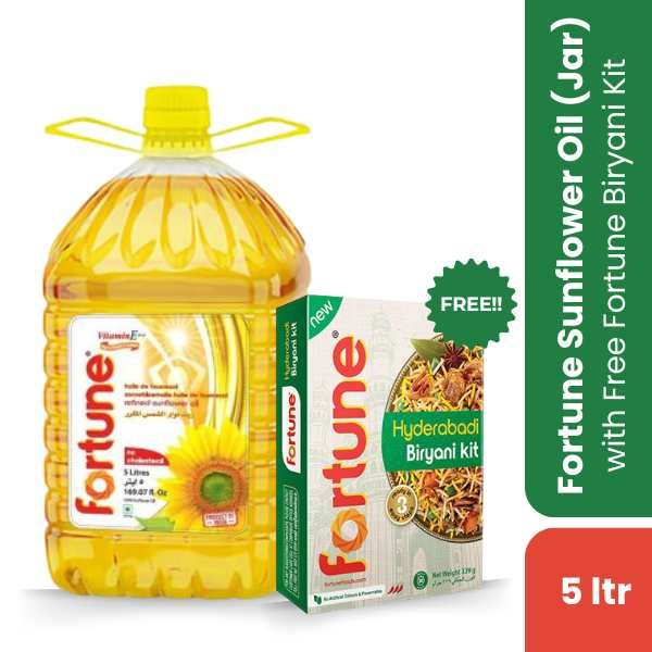 Fortune Sunflower Oil (Jar), 5ltr (FreeFortune Biryani Kit)