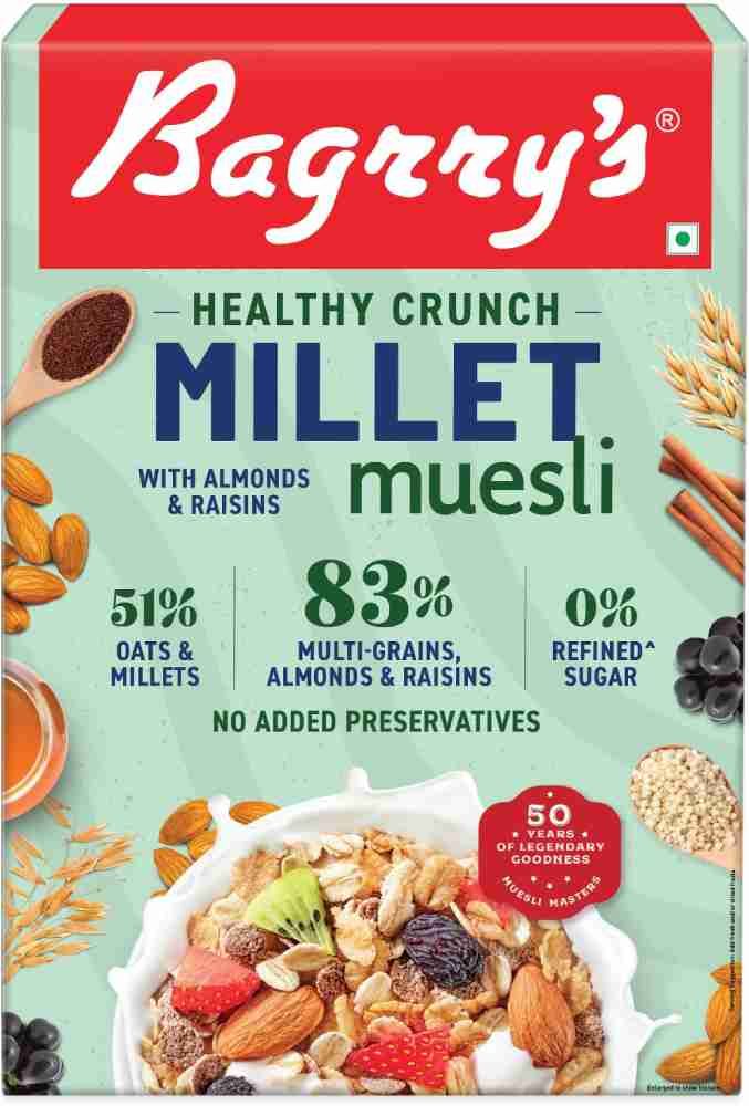 Bagrry's Healthy Crunch Millet Muesli with Almonds, Raisins, 500gm Box