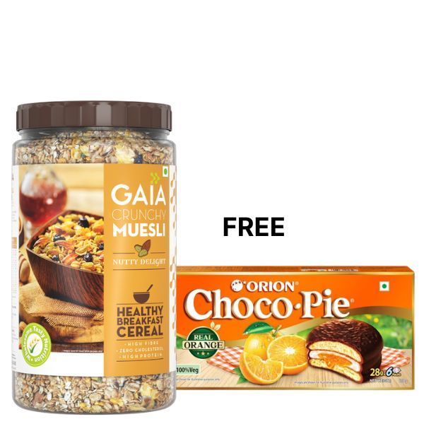 GAIA Crunchy Nutty Delight Muesli, 1Kg Jar (Free Orion Choco Pie- Orange)