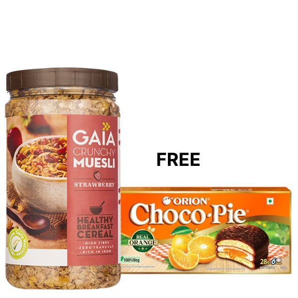 GAIA Crunchy Strawberry Muesli, 1Kg Jar (Free Orion Choco Pie Orange)
