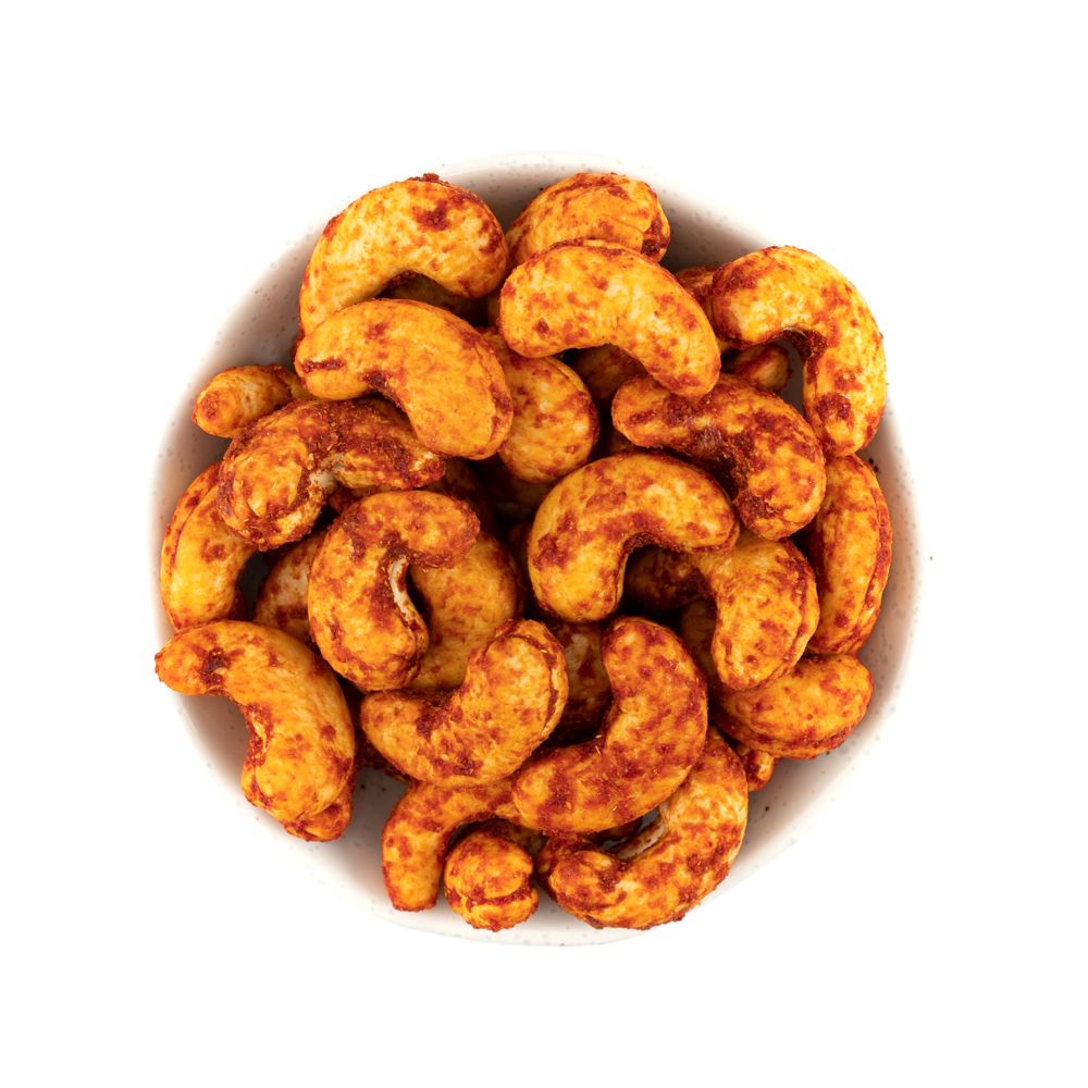 Roasted Chilly Cashew (Kaju) are cashew roasted and coated with red chilly powder, these gives cashew a salty and spicy flavour