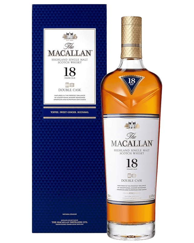Our Double Cask whiskies are aged in two types of oak, in specially selected hand-crafted casks seasoned with dry Oloroso sherry. American oak imparts delicate flavours of vanilla, citrus and butterscotch. European oak delivers the unmistakable subtle spice of The Macallan.