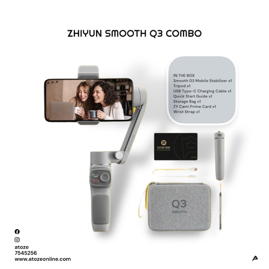 The Zhiyun-Tech Smooth-Q3 combo version additionally includes a wrist strap and a protective bag for safer use and easier transport and storage.