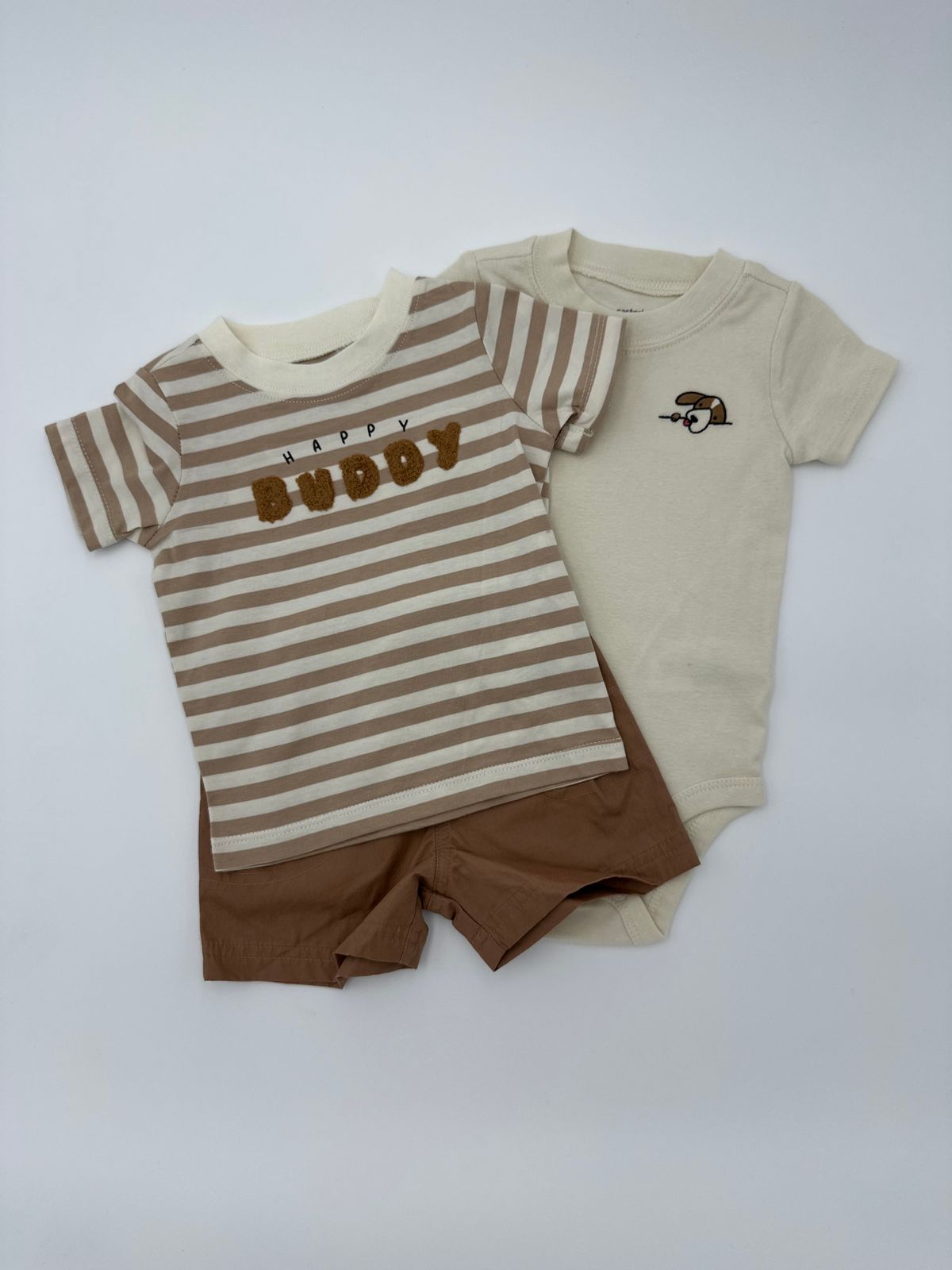 Set de 3 piezas playera, pañalero y short en todos cafe.