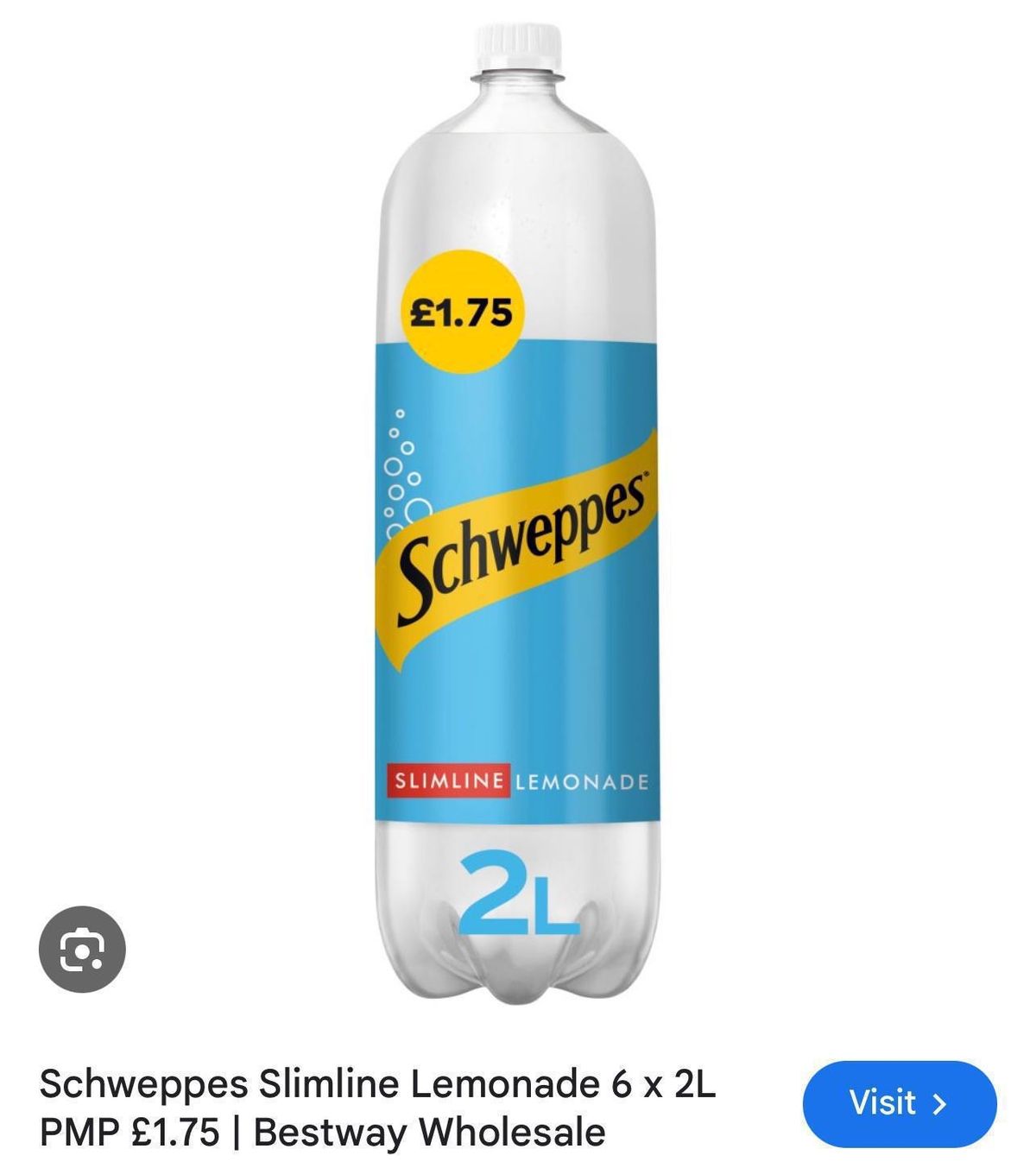 Schweppes slimline lemonade pm £1.75 6x2L bbe 08/24 5 cases
