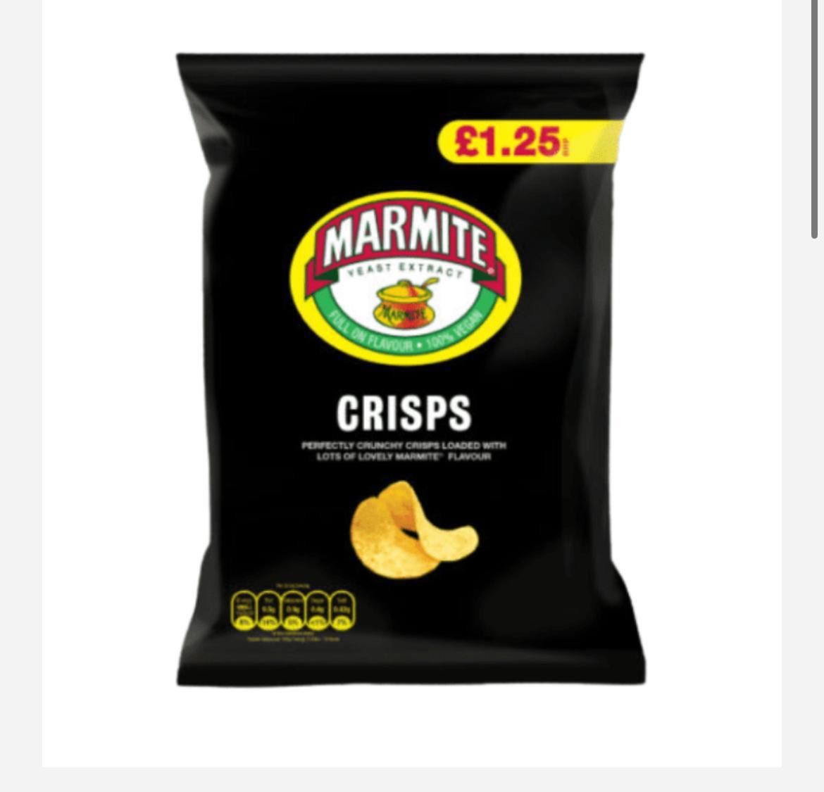 Marmite crisps £1.25pm 65g BBE 21/09/24