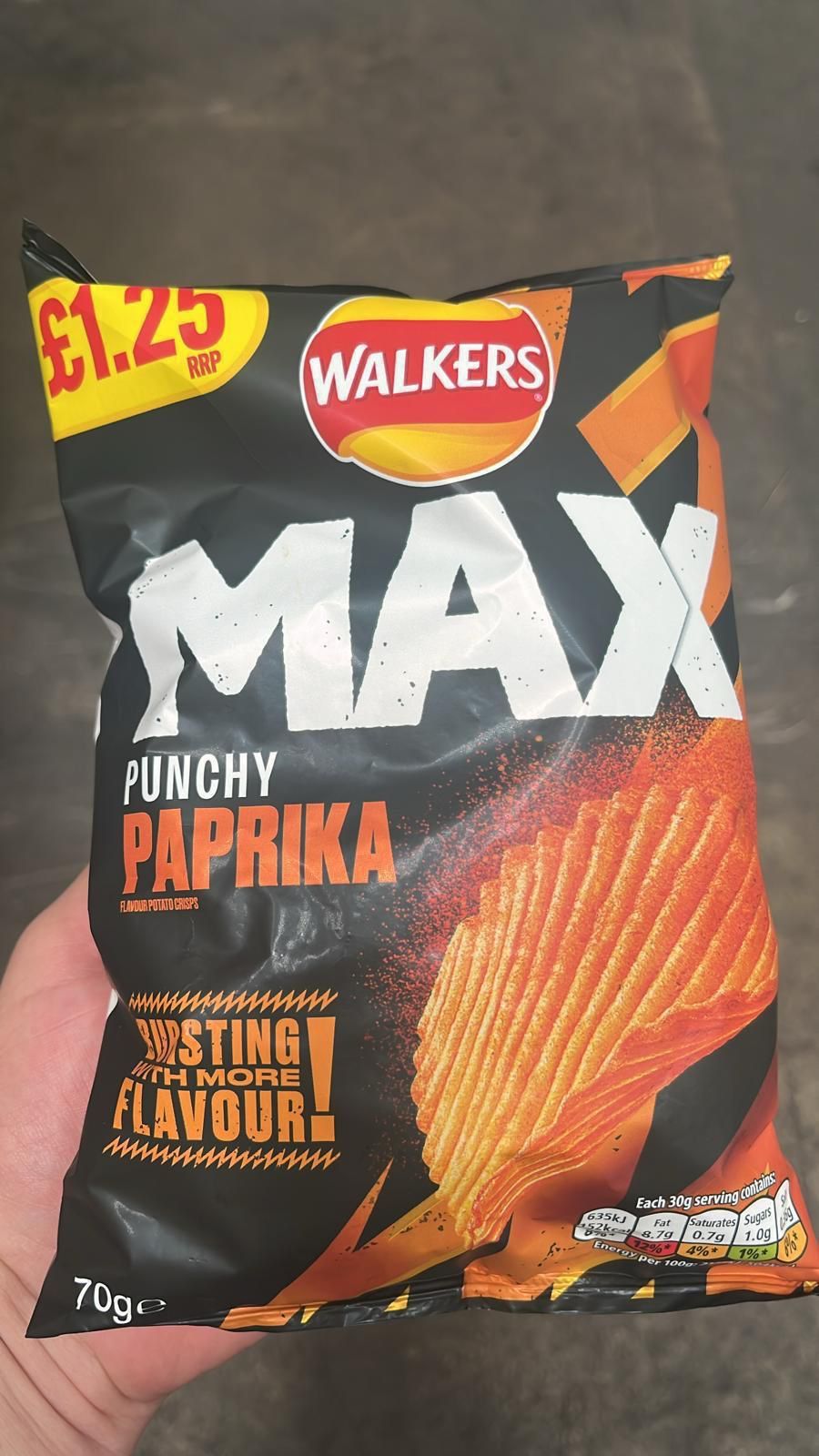 Walkers max paprika pm £1.25 70g BBE 22/09/24