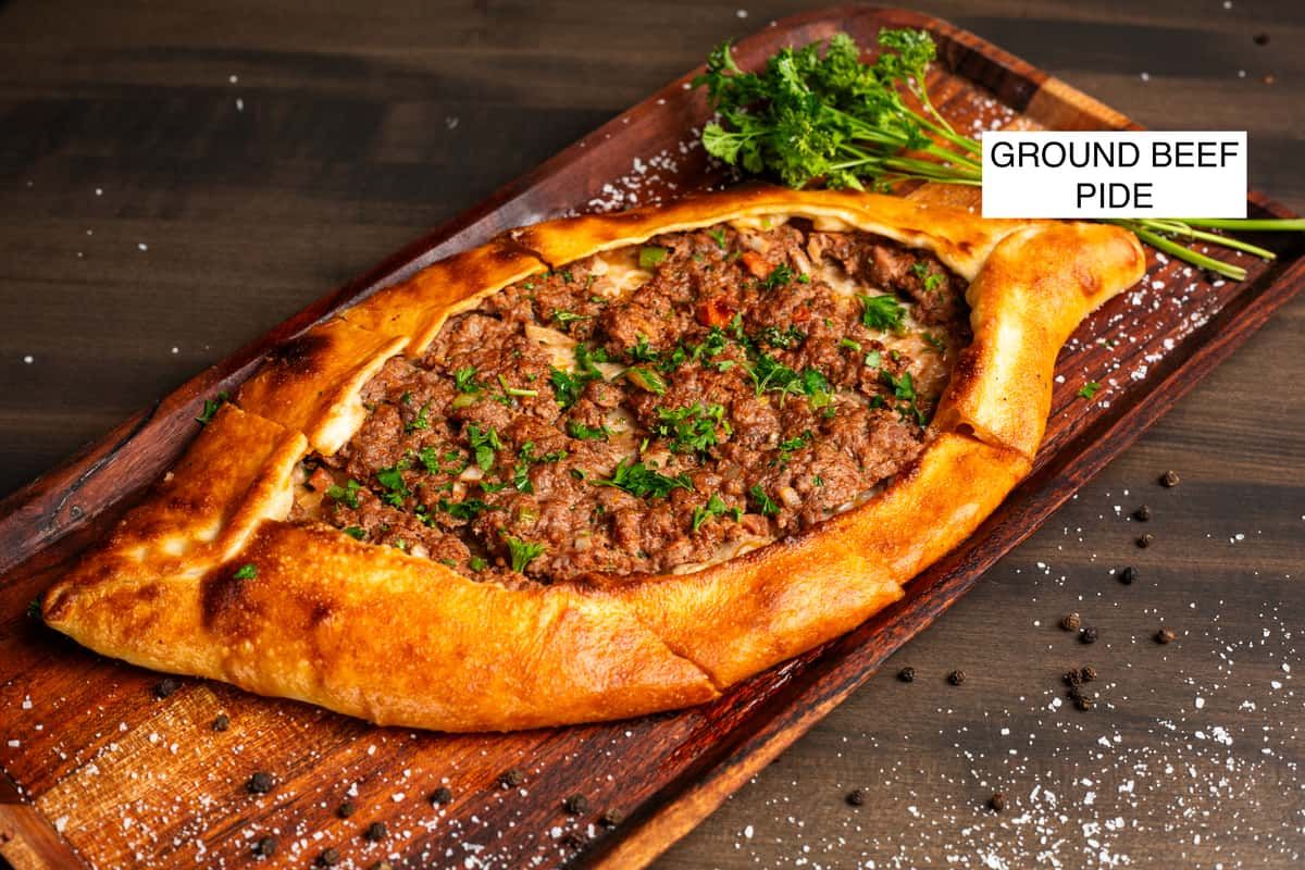 Freshly Baked Bread stuffed with Ground Beef, onions, tomato, lemon juice, chilli