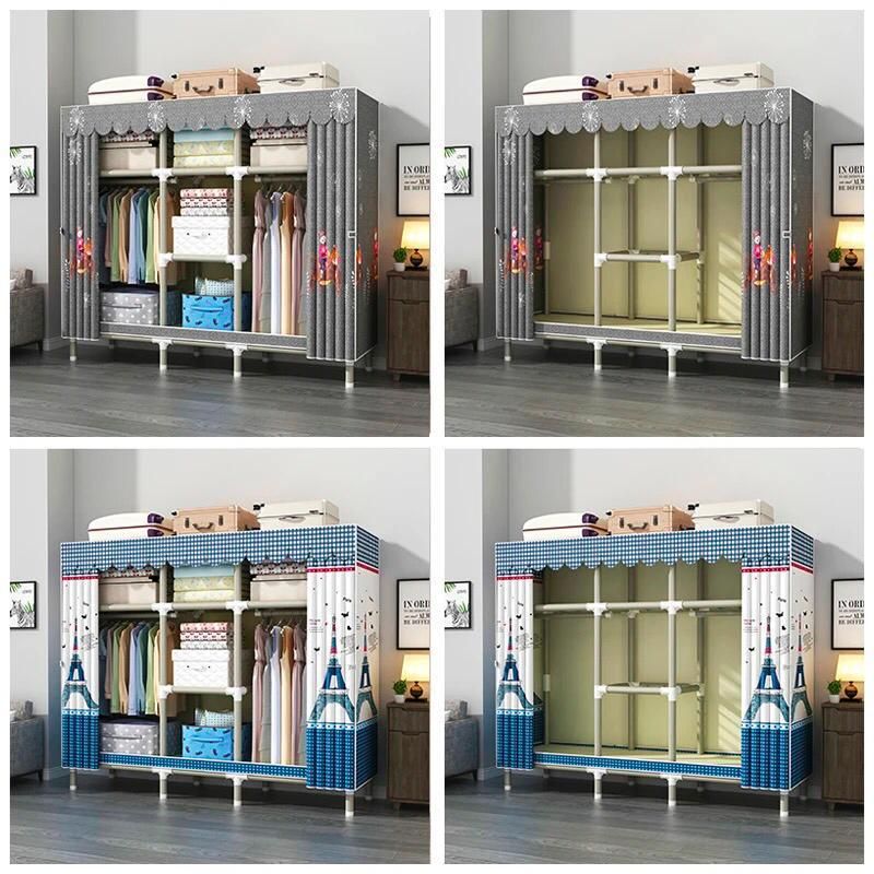 Portable Wardrobe Cloth Wardrobe Wardrobe Bedroom Bedroom Simple Cloth Steel Tube Bold Household Hanging Ox Fabric Assembly Rental House Use, a Portable Cloth Hanger