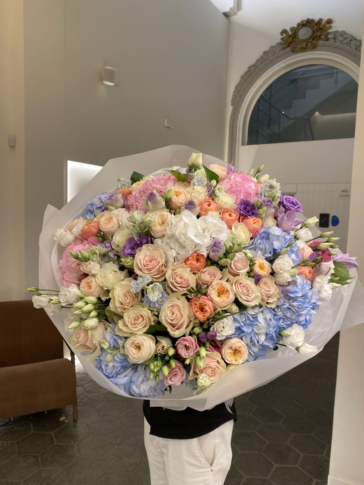 DELPHINIUM, FRESIA, HORTENSIA, LISIANTHUS, ROSA DE JARDIN, ROSAS, ROSAS SPRAY