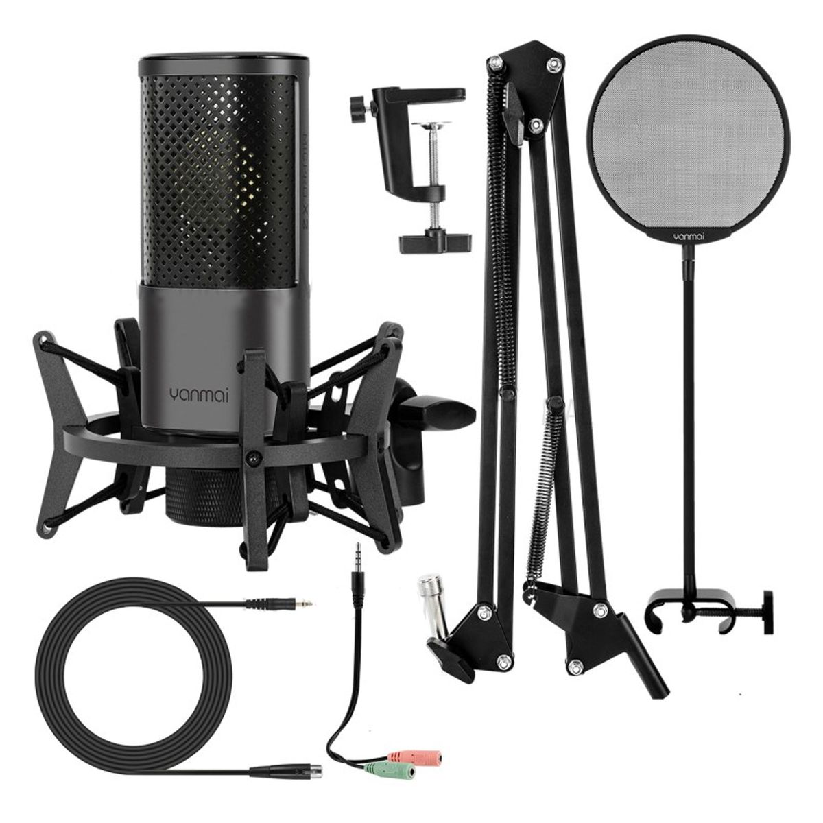 Kit microphone à condensateur YANMAI X2, support antichoc cardioïde, capuchon en mousse et câble pour enregistrement en studio sur PC
