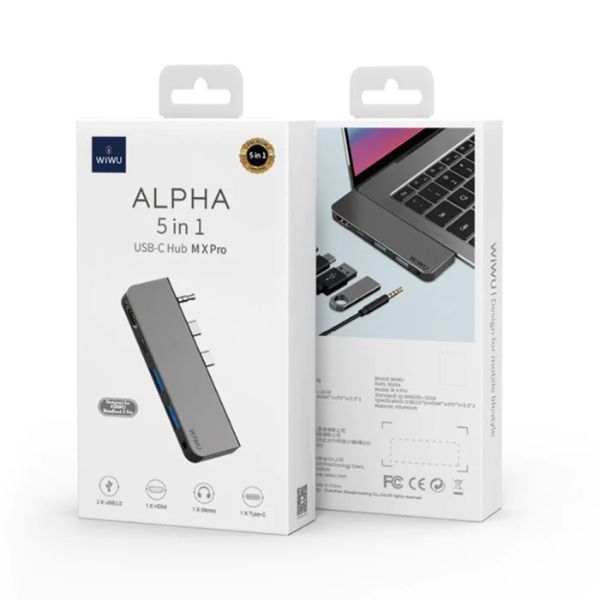 Adaptateur USB-C Multifunction HUB Docking Station WIWU Alpha m X Pro 5 in 1 USB 3.0 x2 + HDMI + 3.5mm Audio Jack + Type-C
