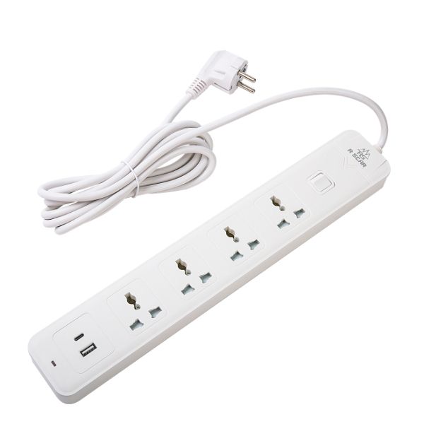 Multiprise électrique 4 prises (3M) Avec 2 Ports de Chargement USB & Type-C