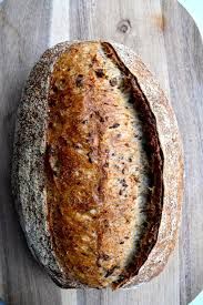 Brown sourdough enriched with flax, chia, sunflower, and sesame seeds.