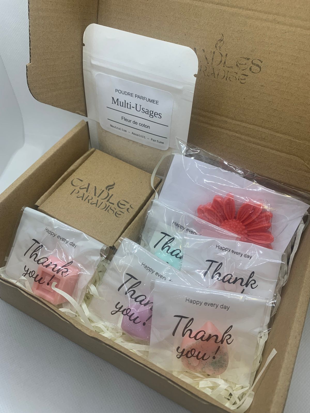 Offrez à votre maman un moment de détente absolue avec notre box “Douce Maman”. Une sélection raffinée de bougies et fondants parfumés pour dire “je t’aime” avec tendresse et élégance. Parfaite pour créer une ambiance cocooning, pleine de douceur et de gratitude.