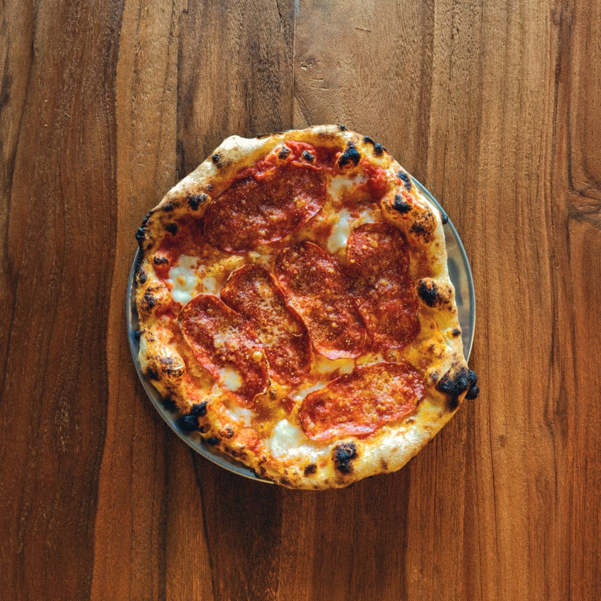 spicy salami, crushed tomato sauce, fior di latte, parmigiano, chilli, fresh basil