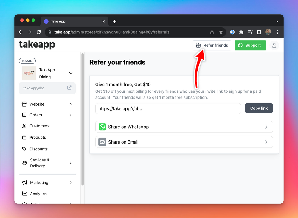 Refer your friends and get $10Share your referral link to your friends. They will get 1 month free subscription. Once your friends make first payment, you will get $10 and it will be applied to your next billing automatically. Find the referral link in your admin dashboard.
