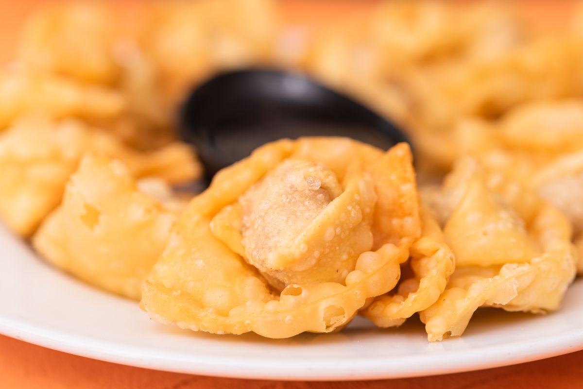 Wantanes fritos rellenos de chancho molido, cantidad a elección.
