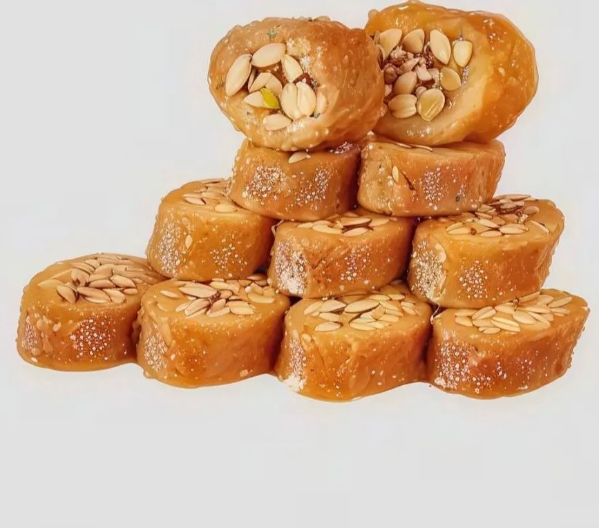 Creamy cheese or semolina pastry soaked in rose or orange blossom syrup