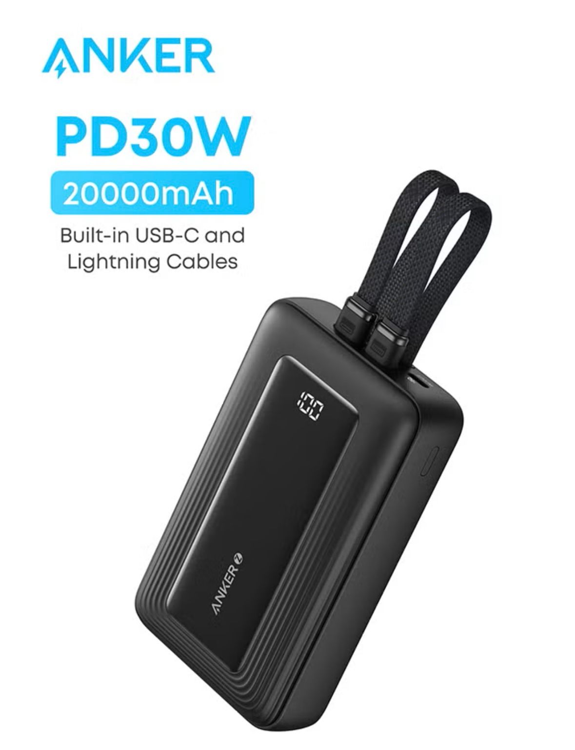 Zolo Power Bank, 20,000mAh 30W Max Fast Portable Charger with Built-in USB-C and MFi Certified Lightning Cables, 1 USB-C, 1 USB-A, Battery Pack for iPhone 16/15/14 Series, Galaxy, and more