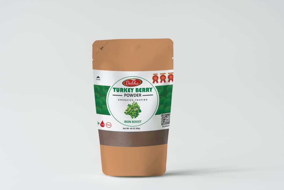 Daliha Turkey Berry Powder is an award-winning product processed from a variety of carefully selected organic herbs and fruits that are hygienically produced and packaged into environmentally friendly paper pouches to help support good nutrition. It help support energy and vitality