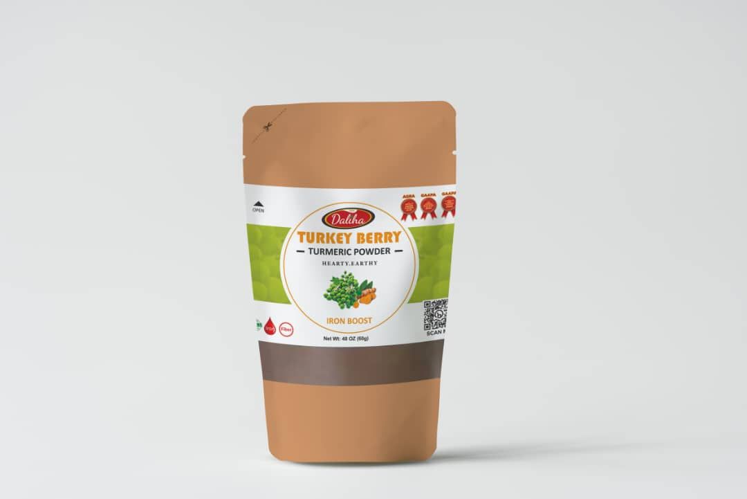 Daliha Turkey Berry Turmeric Powder is an award-winning product processed from a variety of carefully selected organic herbs that are hygienically packaged into environmentally friendly paper pouches to help support good nutrition. It contains iron and has anti-inflammatory properties. A healthy heart is possible