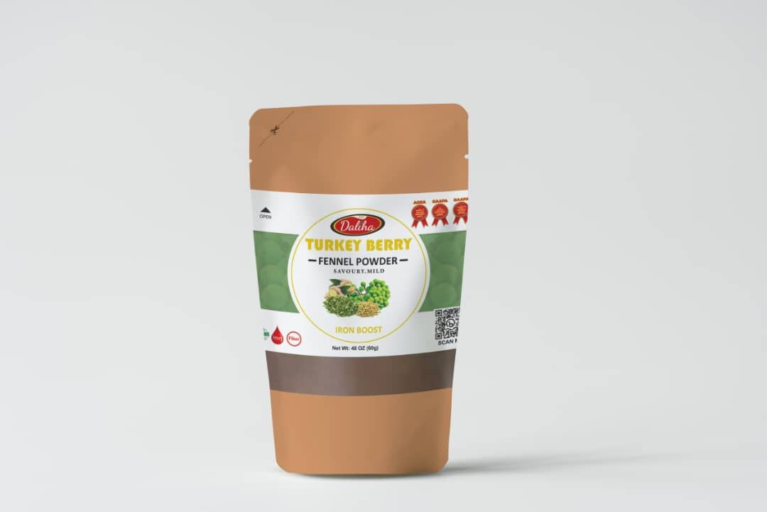 Daliha Turkey Berry Fennel Powder is an award-winning product processed from a variety of carefully selected organic herbs and fruits that are hygienically produced and packaged in environmentally friendly pouches to help support good nutrition. It contains iron,fibre which helps supports the body’s ability to digest.