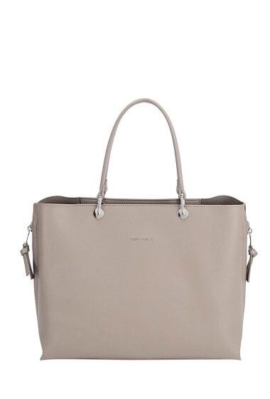 The bag has two handles and an adjustable shoulder strap. The height of the handles above the upper edge of the handbag is 17 cm. The bag has a zip fastening. Inside the bag there are two side compartments with magnetic closure, in the middle compartment there is a zipped pocket and two open pockets. There are metal protective studs on the bottom of the bag. Dimensions: length 33 cm, width 10 cm, height 25 cm