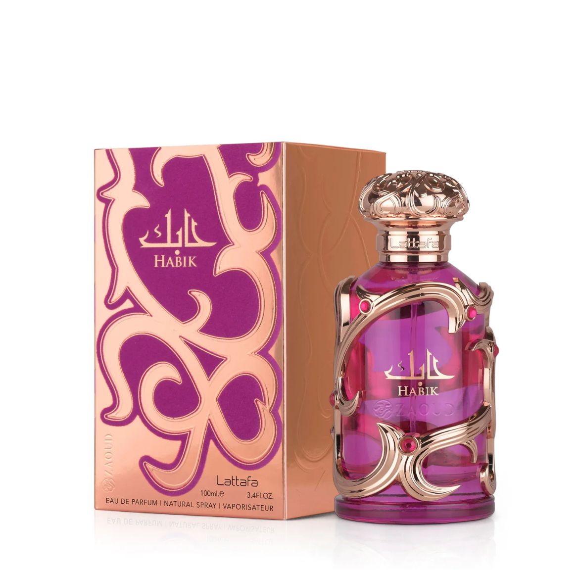 Habik For Women by Lattafa Perfumes is a Floral Fruity fragrance for women. This is a new fragrance. Habik For Women was launched in 2025. Top notes are Pear and Bergamot; middle notes are Lily of the Valley, Jasmine and Freesia; base notes are Oakmoss, Amber and Musk.