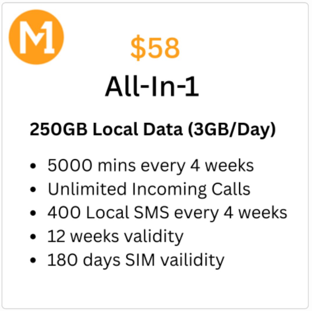 M1 $58 252GB All-In-1 12-Week Top-up Plan