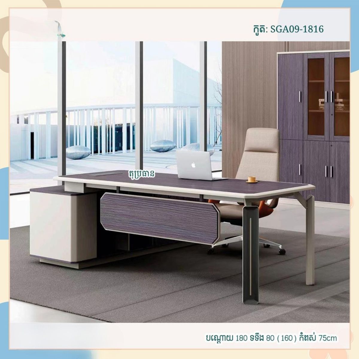 តុប្រធាន ឈើក្រាស់ ជើងដែក