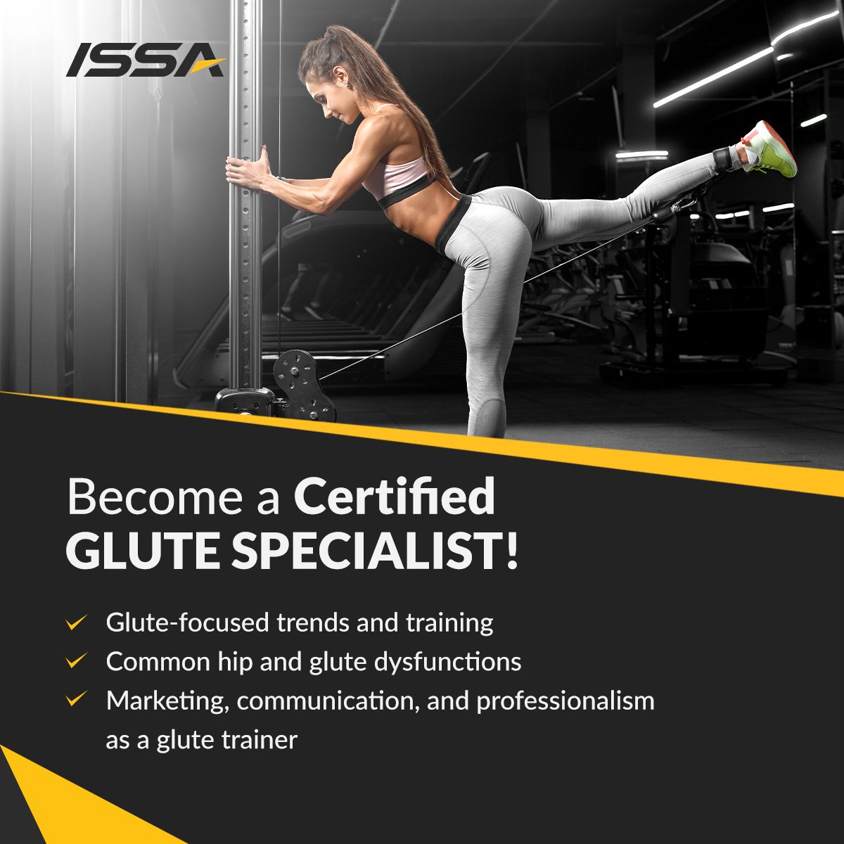 Whether it’s for function, form, or figure – glutes are arguably the #1 area clients want to train. Now you can make clients’ ideal glutes a reality as an ISSA Certified Glute Specialist! The first and only certification of its kind – ISSA’s Certified Glute Specialization focuses completely on this in-demand service.