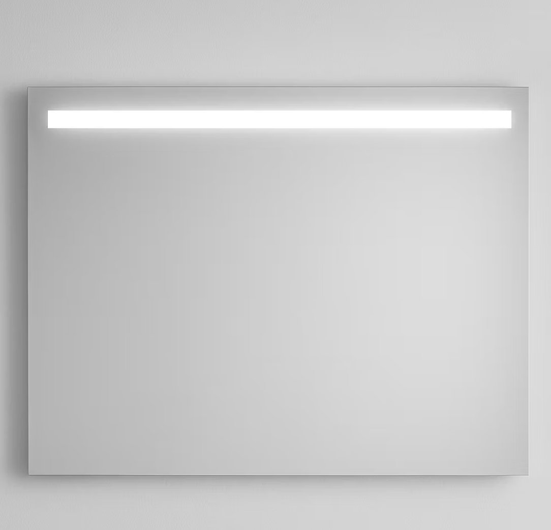 Este elegante espejo cuenta con una franja esmerilada retroiluminada que proyecta una luz suave y funcional desde el interior, creando un efecto visual moderno y sofisticado. La luz LED se filtra a través del esmerilado con precisión, ofreciendo una iluminación frontal discreta y efectiva.