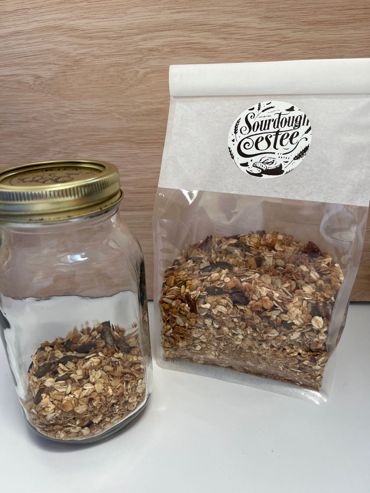 I use only real food: no refined sugars, no additives, no seed oils. Each batch is gently baked for a perfect balance of crisp clusters and natural sweetness, rich in fibre and healthy fats to support good gut health and lasting energy.