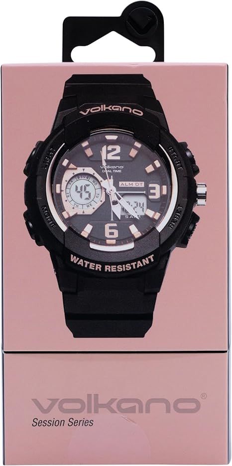 Volkano Session Series Men's Sport Watch with LED Back Light, Black/Rose Gold