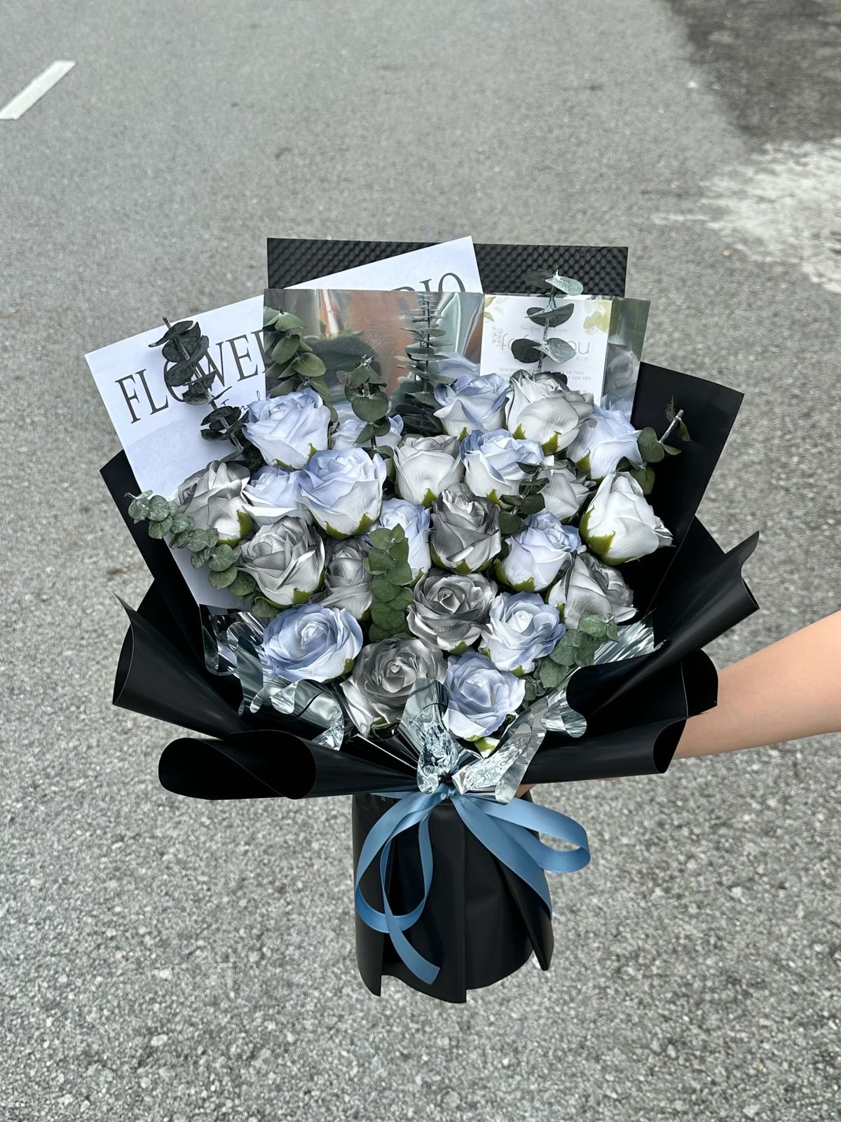 • 22朵大香皂玫瑰 + 干尤加利叶