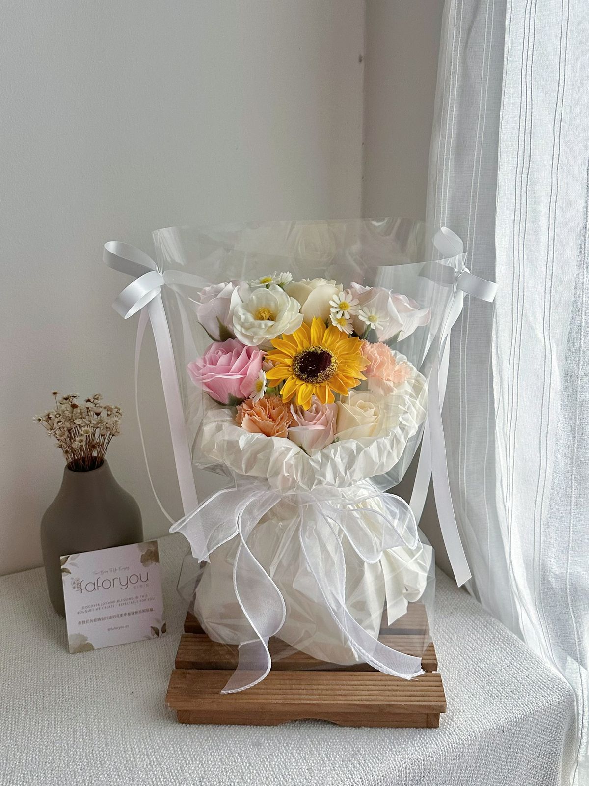 Transparent Soap Flower Mixed Bouquet ( Sunflower )