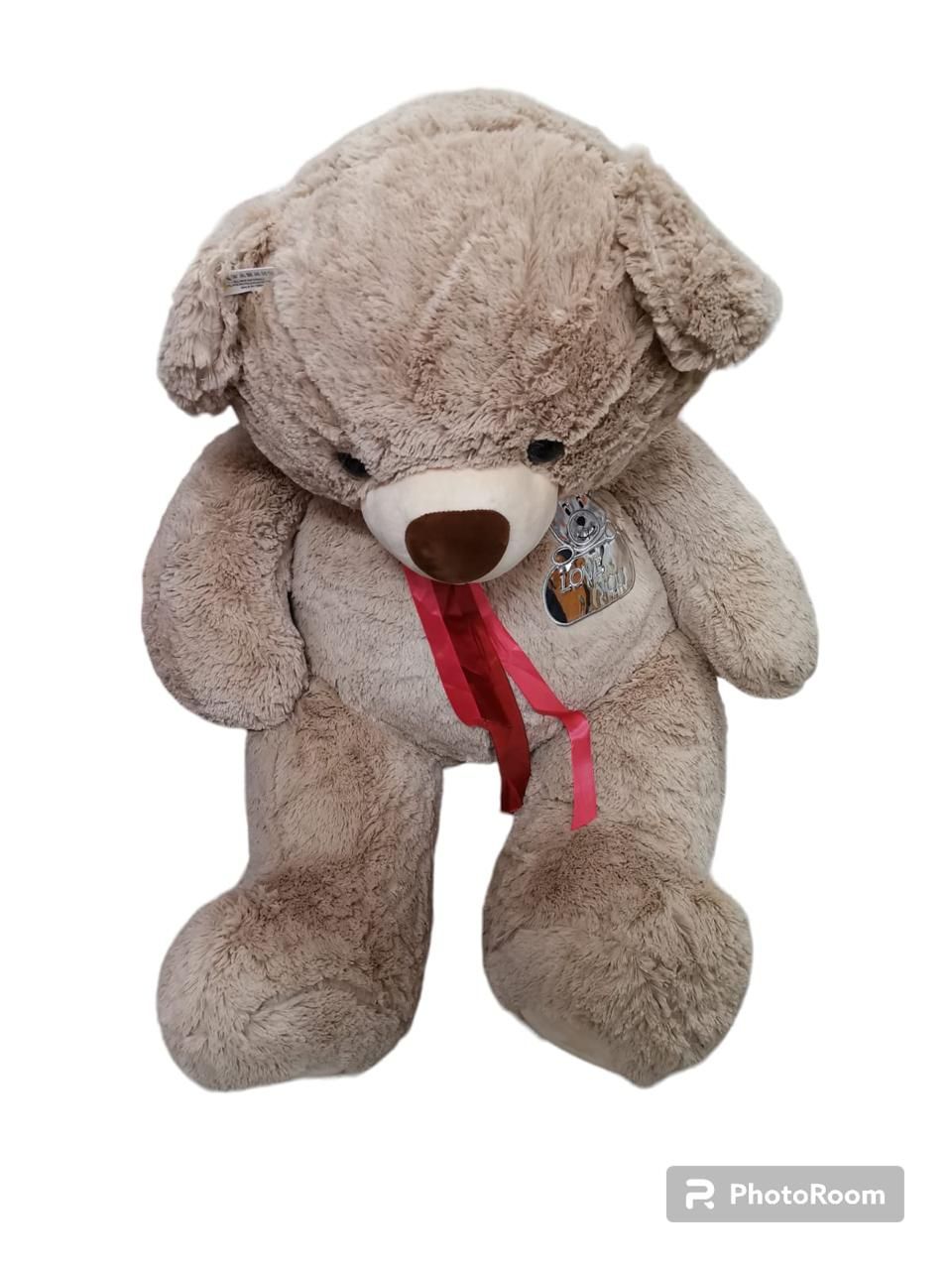 Description: This charming plush teddy bear with its soft, fur-like texture and adorable expression is the perfect cuddly companion for children and adults alike. Adorned with a vibrant red ribbon, it makes a thoughtful gift for any occasion. Safe for all ages, it's designed for endless hugs and comfort.